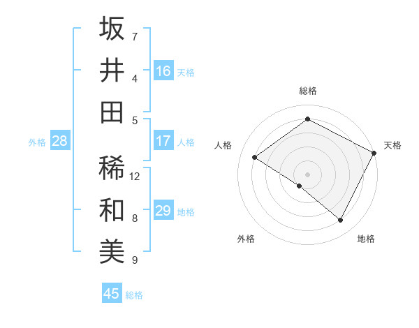 坂井田 稀和美さんを姓名の画数から五運を鑑定