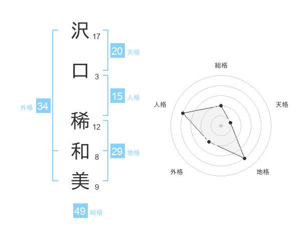 沢口 稀和美さんの総格は49画の2点