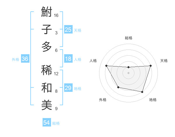 鮒子多 稀和美さんの外格は36画の3点