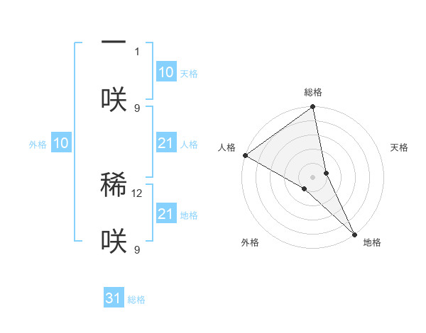 一咲 稀咲さんの地格は21画の5点!