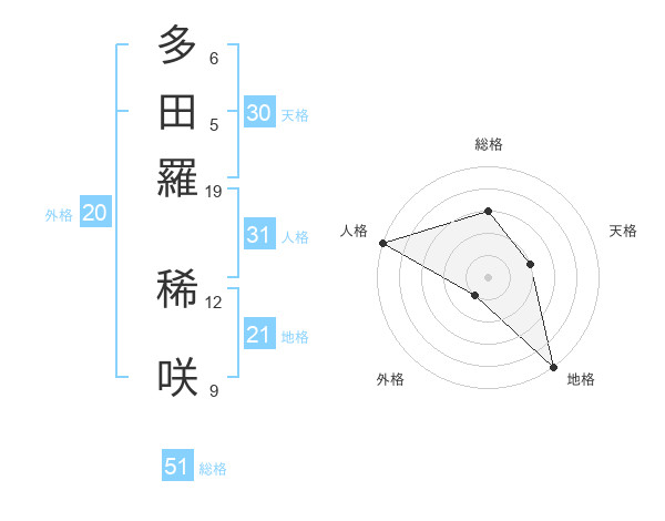 多田羅 稀咲さんを姓名の画数から五運を鑑定