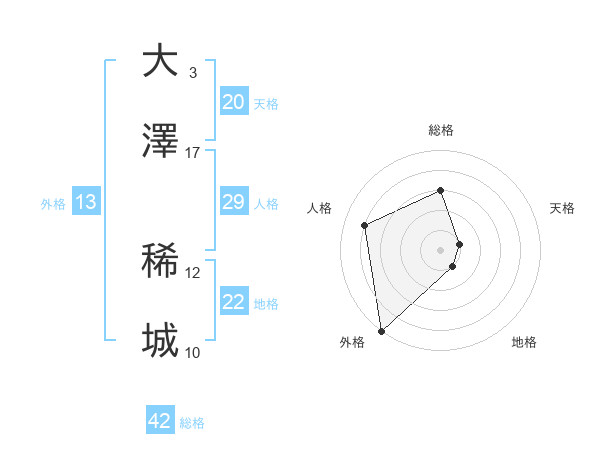 大澤 稀城さんを姓名の画数から五運を鑑定