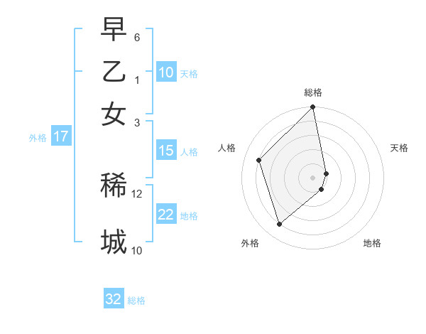 早乙女 稀城さんの総格は32画の5点!