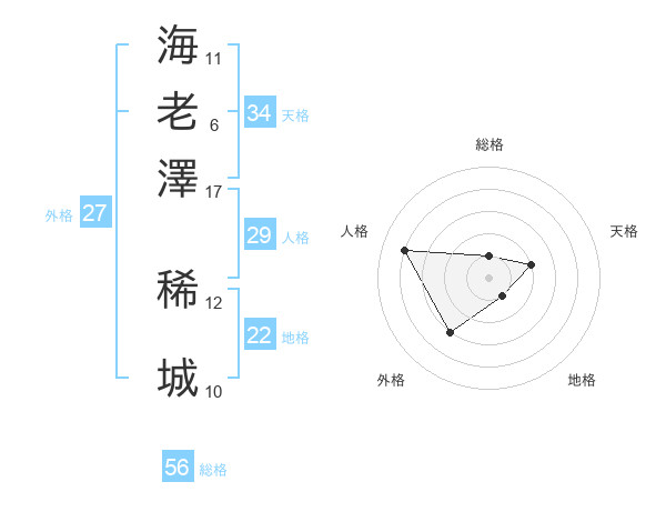 海老澤 稀城さんを姓名の画数から五運を鑑定