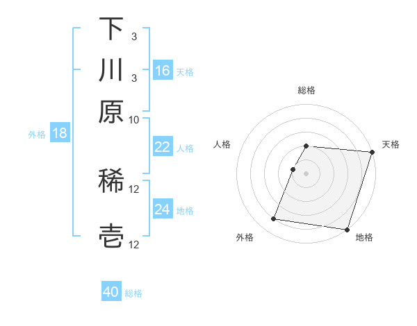 下川原 稀壱さんを姓名の画数から五運を鑑定
