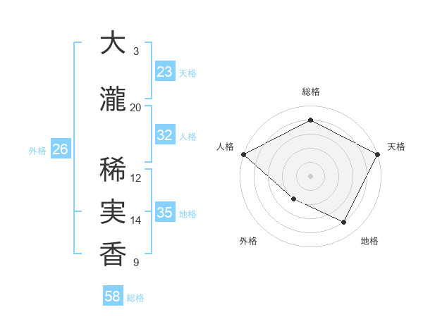 大瀧 稀実香さんの天格は23画の5点!