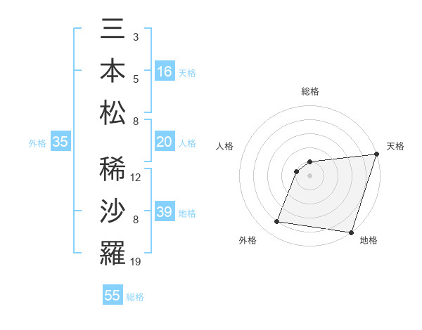 三本松 稀沙羅さんを姓名の画数から五運を鑑定