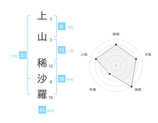 上山 稀沙羅さんを姓名の画数から五運を鑑定