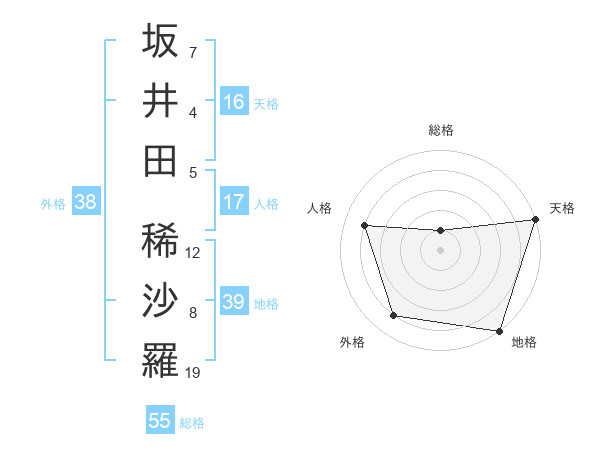 坂井田 稀沙羅さんを姓名の画数から五運を鑑定