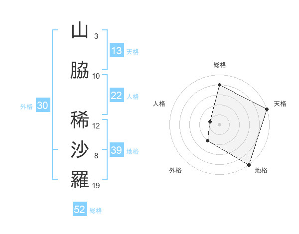 山脇 稀沙羅さんの総格は52画の4点!