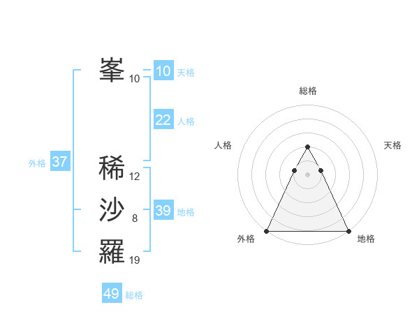 峯 稀沙羅さんの外格は37画の5点!