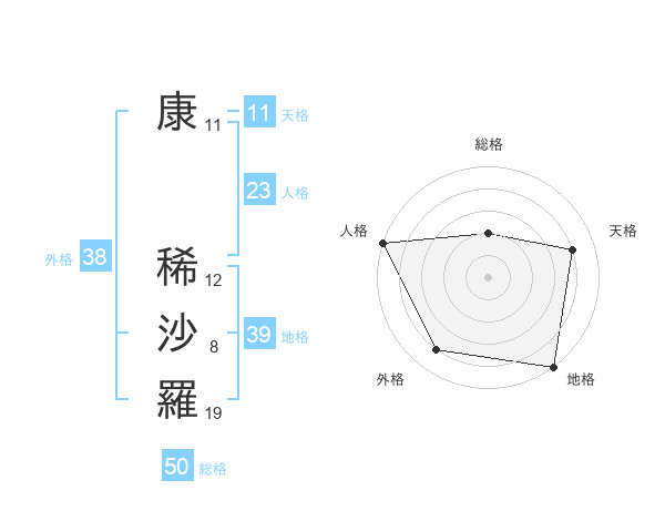 康 稀沙羅さんを姓名の画数から五運を鑑定