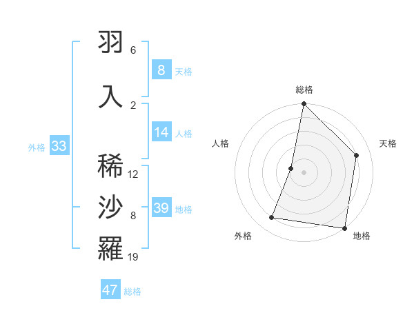 羽入 稀沙羅さんの総格は47画の5点!