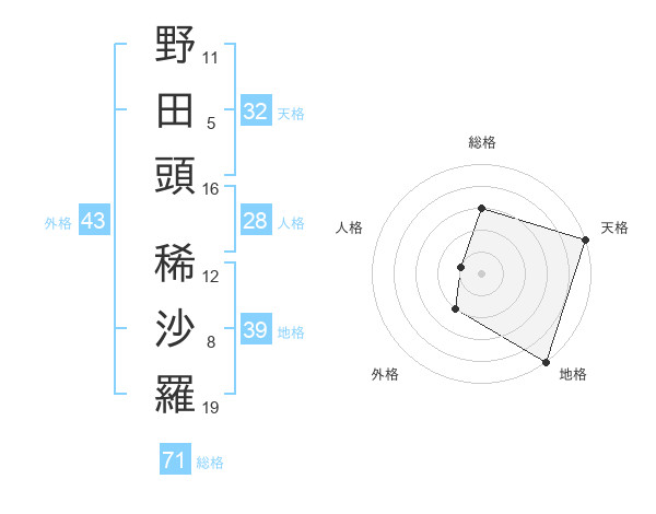 野田頭 稀沙羅さんを姓名の画数から五運を鑑定
