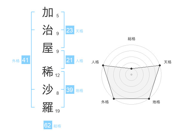 加治屋 稀沙羅さんの天格は23画の5点