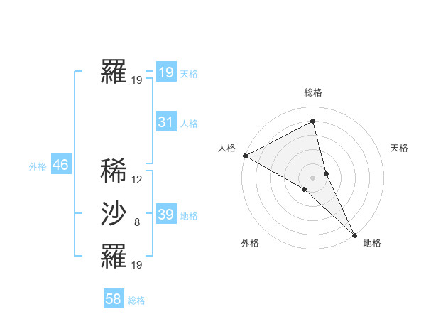 羅 稀沙羅さんの総格は58画の4点!