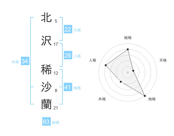 北沢 稀沙蘭さんを姓名の画数から五運を鑑定