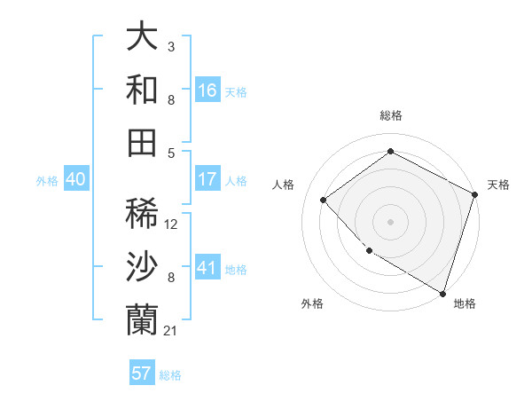大和田 稀沙蘭さんを姓名の画数から五運を鑑定