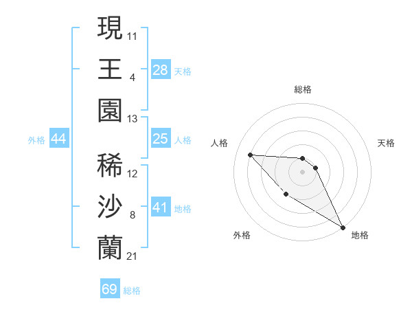 現王園 稀沙蘭さんを姓名の画数から五運を鑑定