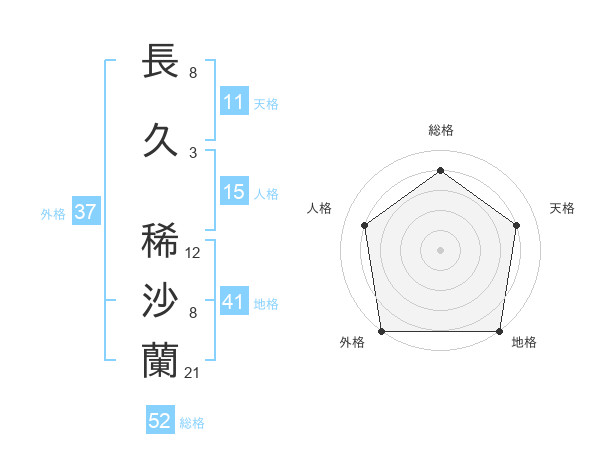 長久 稀沙蘭さんを姓名の画数から五運を鑑定