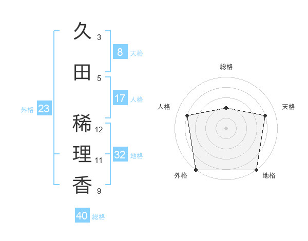 久田 稀理香さんを姓名の画数から五運を鑑定