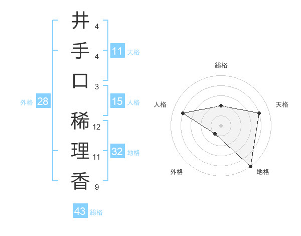 井手口 稀理香さんの総格は43画の2点!