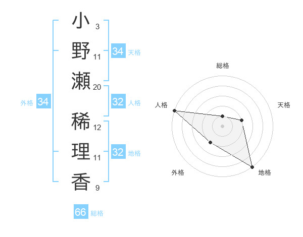 小野瀬 稀理香さんを姓名の画数から五運を鑑定