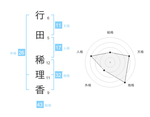 行田 稀理香さんを姓名の画数から五運を鑑定