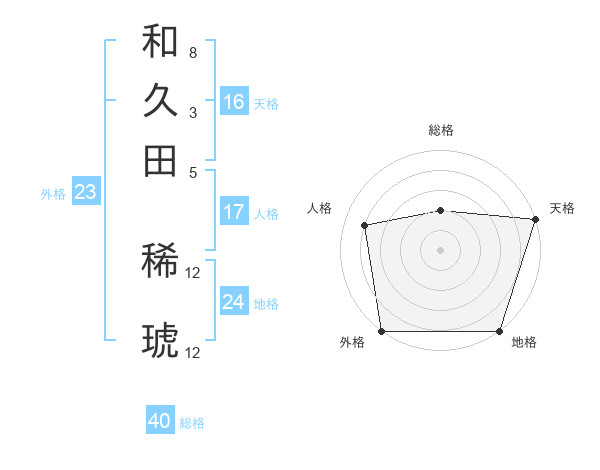 和久田 稀琥さんの外格は23画の5点!