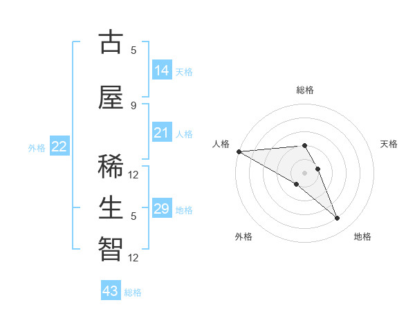古屋 稀生智さんを姓名の画数から五運を鑑定