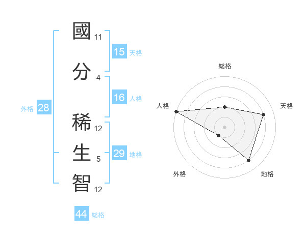 國分 稀生智さんを姓名の画数から五運を鑑定