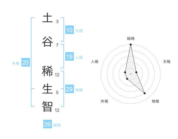 土谷 稀生智さんを姓名の画数から五運を鑑定
