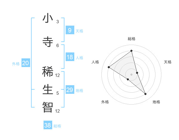 小寺 稀生智さんを姓名の画数から五運を鑑定
