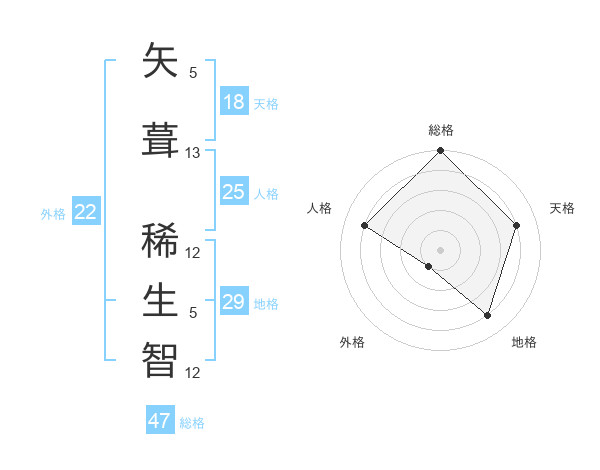 矢葺 稀生智さんの総格は47画の5点!
