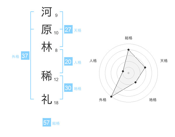 河原林 稀礼さんの総格は57画の4点!