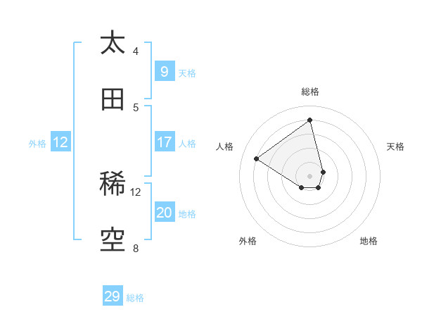 太田 稀空さんの総格は29画の4点!