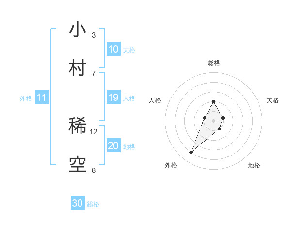 小村 稀空さんの総格は30画の2点!