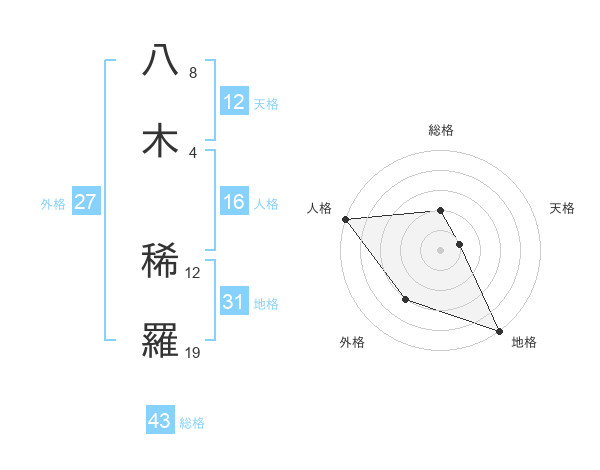 八木 稀羅さんの総格は43画の2点!