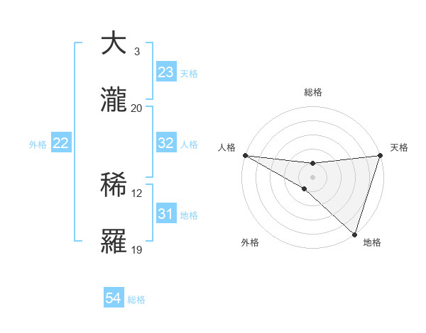 大瀧 稀羅さんを姓名の画数から五運を鑑定