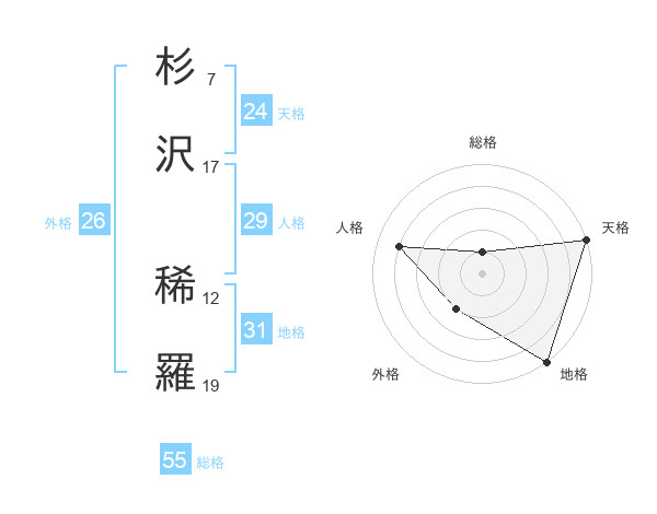 杉沢 稀羅さんを姓名の画数から五運を鑑定