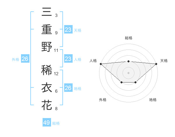 三重野 稀衣花さんの人格は23画の5点!