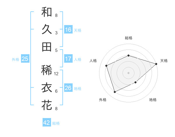 和久田 稀衣花さんの天格は16画の5点