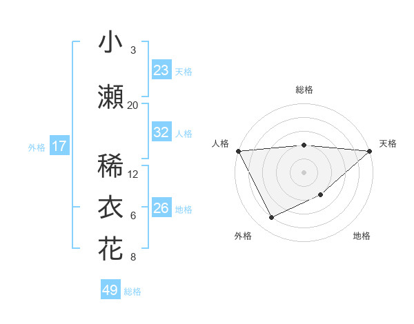 小瀬 稀衣花さんを姓名の画数から五運を鑑定