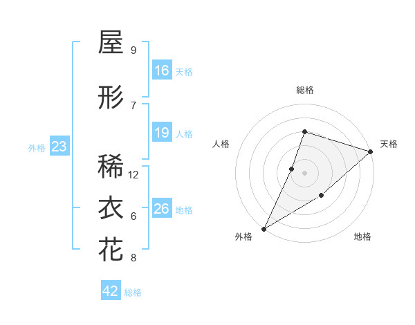 屋形 稀衣花さんを姓名の画数から五運を鑑定