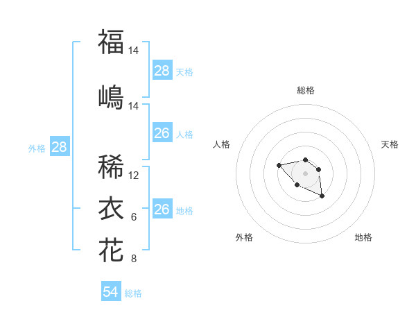 福嶋 稀衣花さんを姓名の画数から五運を鑑定