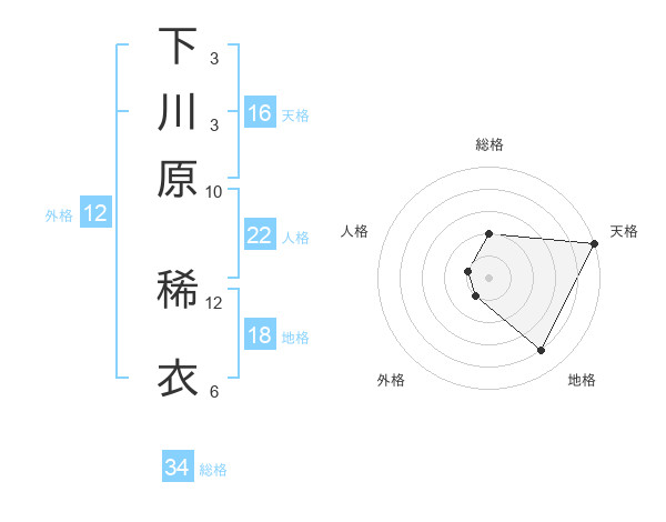 下川原 稀衣さんの総格は34画の2点!