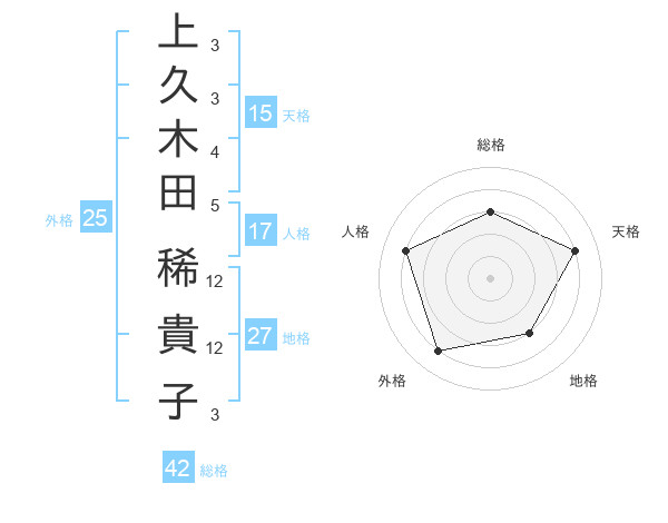 上久木田 稀貴子さんの総格は42画の3点!