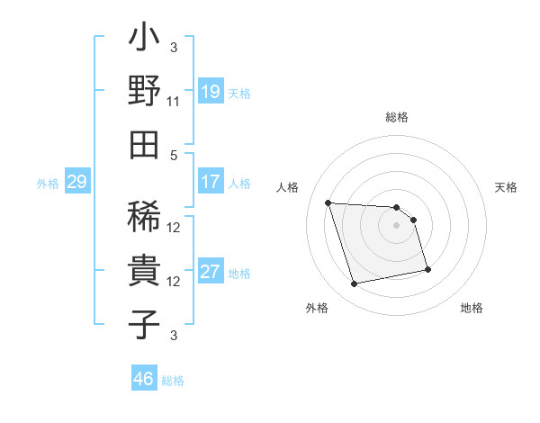 小野田 稀貴子さんの外格は29画の4点!