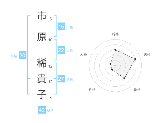 市原 稀貴子さんの総格は42画の3点!