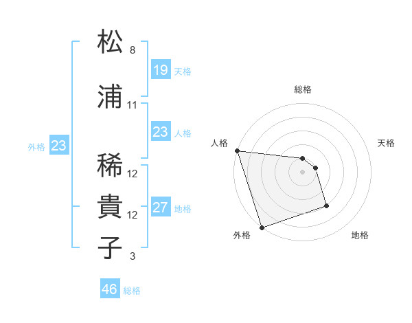 松浦 稀貴子さんの外格は23画の5点!
